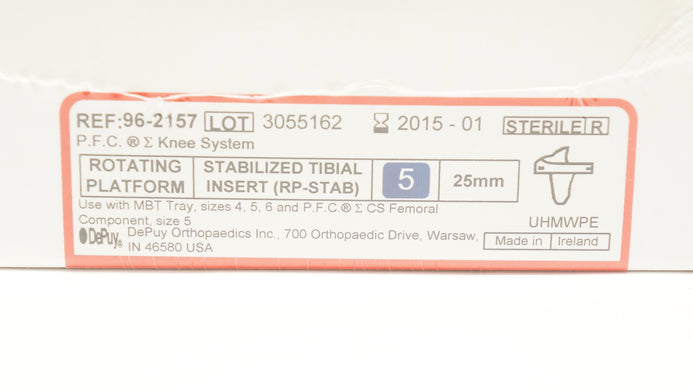 - DePuy 96-2157 Stabilized Tibial Insert (RP-STAB) Size 5, 25mm (x)