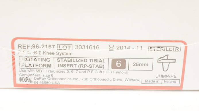 - DePuy 96-2167 Rotating Platform Stabilized Tibial Insert Size 6, 25mm (x)