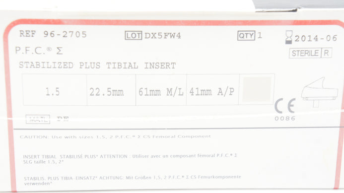 - DePuy 96-2705 Stabilized Plus Tibial Insert 1.5 x 22.5 x 61mm x 41 (x)