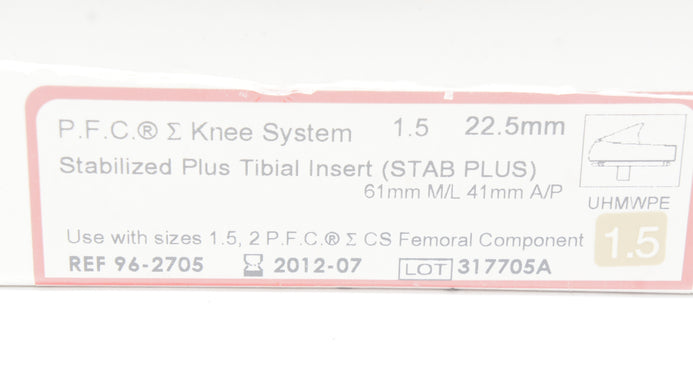 - DePuy 96-2705 Stabilized Plus Tibial Insert 1.5 x 22.5 x 61mm x 41 (x)