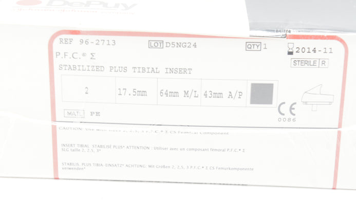 - DePuy 96-2713 Stabilized Plus Tibial Insert 2 x 17.5mm x 64mm x 43mm (x)