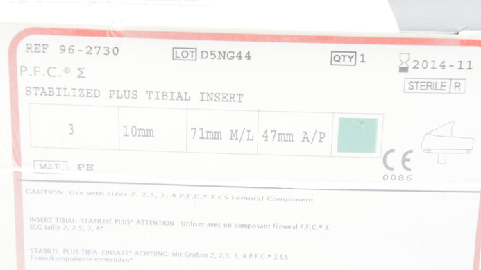 - Depuy 96-2730 Stabilized Plus Tibial Insert 3 x 10mm x 71mm x 47mm (x)