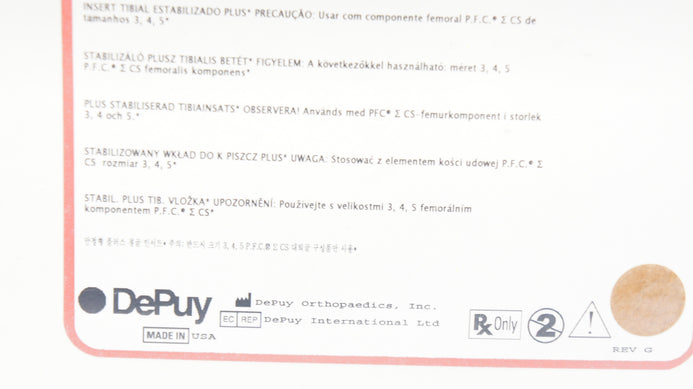 - DePuy 96-2744 Stabilized Plus Tibial Insert 4 x 20mm x 76mm x 51mm (x)