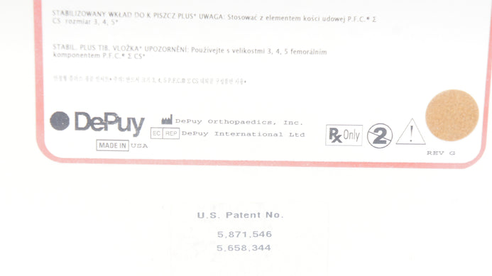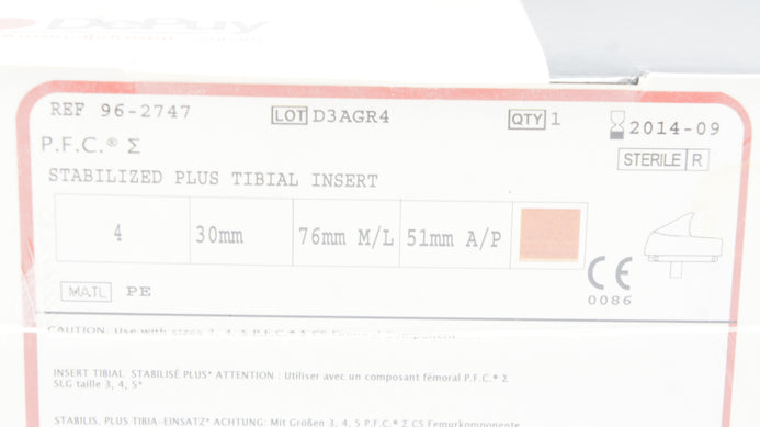 - DePuy 96-2747 Stabilized Plus Tibial Insert 4 x 30mm x 76mm x 51mm (x)