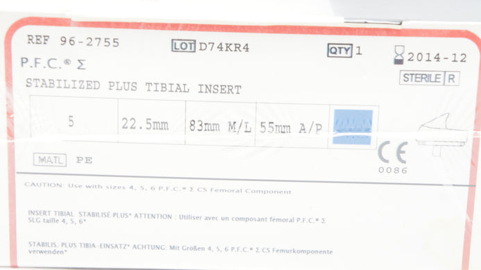 - DePuy 96-2755 Stabilized Plus Tibial Insert 5 x 22.5mm x 83mm x 55mm (x)