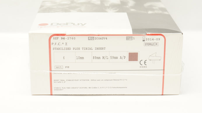 - DePuy 96-2760 Stabilized Plus Tibial Insert Size 6 10mm x 89mmM/L x 59mmA/P(x)