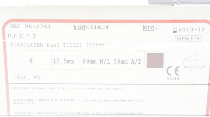 - Depuy 96-2761 Stabilized Plus Tidial Insert 6 x 12.5mm x 89mm x 59mm (x)