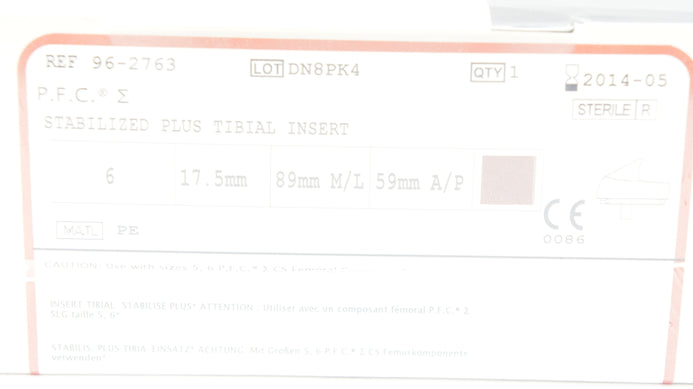 - DePuy 96-2763 Stabilized Plus Tibial Insert 6, 17.5mm x 89mm x 59mm (x)