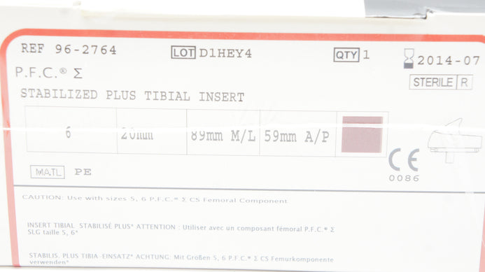 - DePuy 96-2764 Stabilized Plus Tibial Insert 6, 20mm, 89mm M/L, 59mm A/P (x)