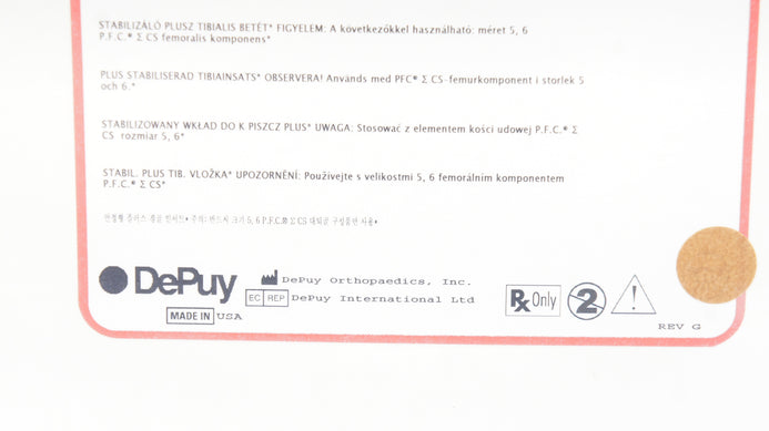DePuy 1550-55-000 Excel Fracture System 5, 16.5 SM 12/14 Taper DePuy 96-2765 Stabilized Plus  Tibial Insert Size 6, 22.5mm, 89mm M/L, 59mm A/P DePuy 96-2765 Stabilized Plus  Tibial Insert Size 6, 22.5mm, 89mm M/L, 59mm A/P
