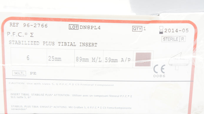 - DePuy 96-2766 Stabilized Plus Tibial Insert 6 x 25mm x 89mm x 59mm (x)