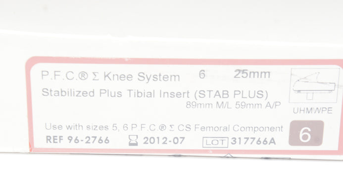 - DePuy 96-2766 Stabilized Plus Tibial Insert 6 x 25mm x 89mm x 59mm (x)