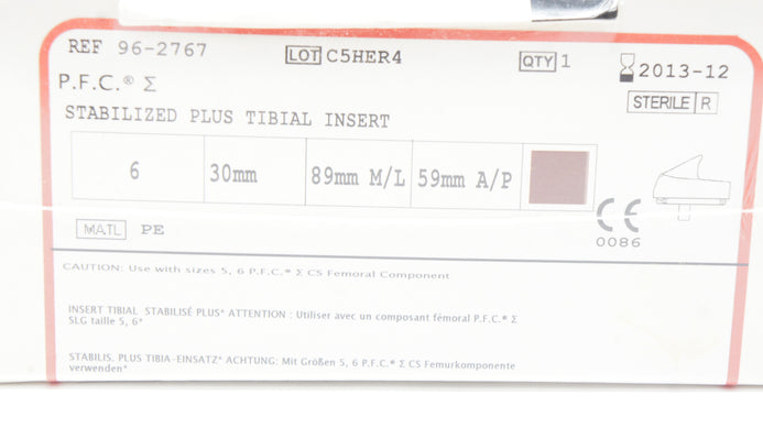 - DePuy 96-2767 Stabilized Plus Tibial Insert 6 x 30mm x 89mm x 59mm (x)