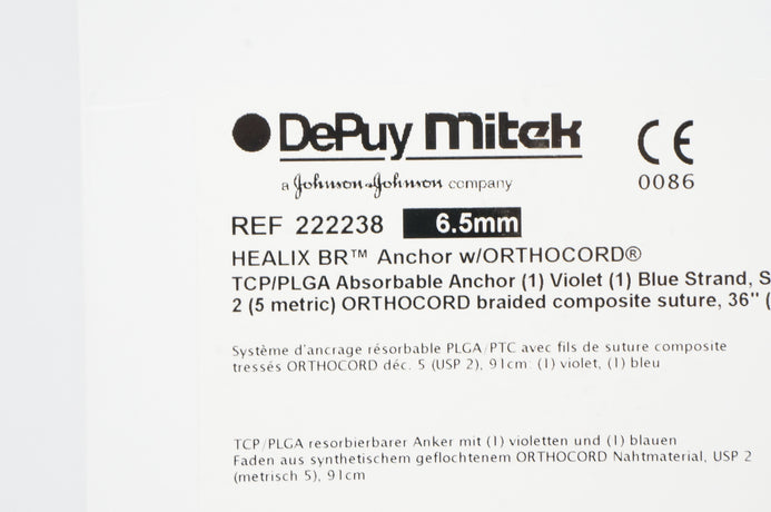 - DePuy Mitek 222238 HEALIX BR Anchor w/ORTHOCORD TCP/PLGA 6.5mm (x)