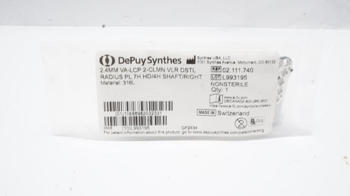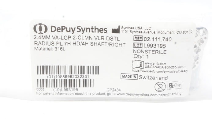 - DePuy Synthes 02.111.740 2.4mm VA-LCP 2-CLMN VLR DSTL PL 7H HD/4H Shaft/Right