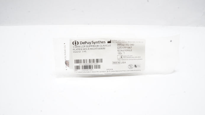 - DePuy Synthes 02.112.080 3.5mm LCP Superior Clavicle Plate /6Hole/Right/85mm