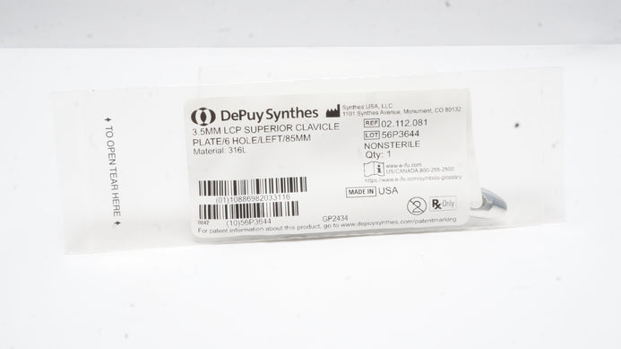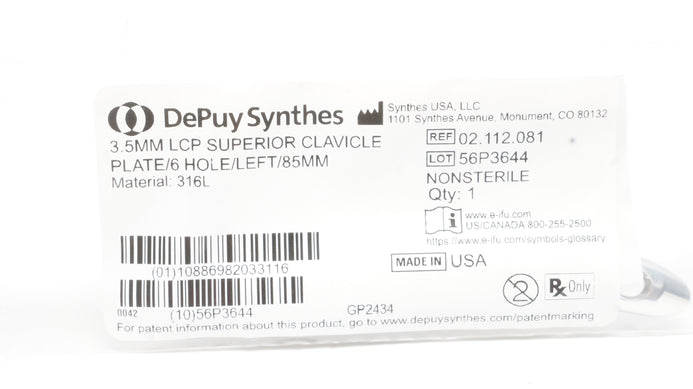 - DePuy Synthes 02.112.081 3.5mm LCP Superior Clavicle Plate /6Hole/Left/85mm