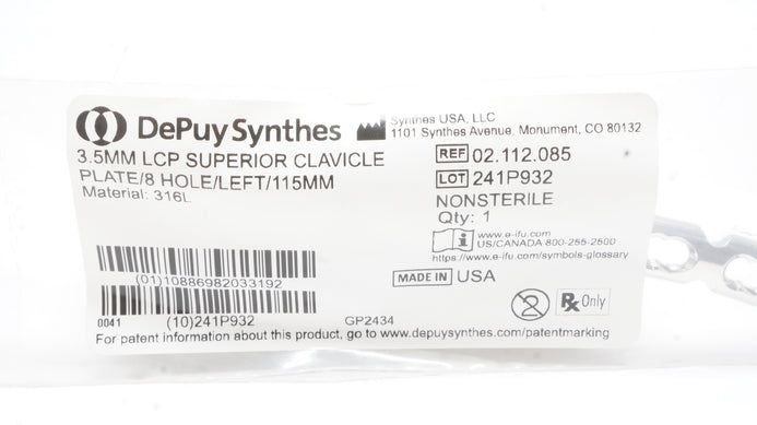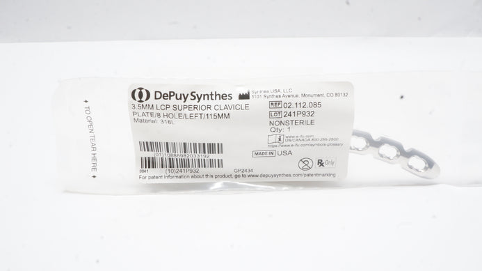- DePuy Synthes 02.112.085 35mm LCP Superior Clavicle Plate/8Hole/Left/115mm