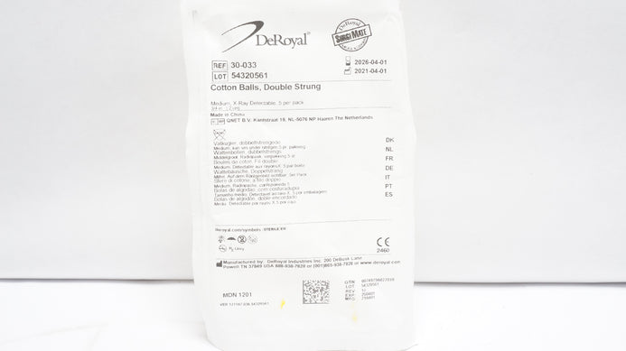 - DeRoyal 30-033 Cotton Balls, Double Strung, Medium, 3/4inch - Pack of 5