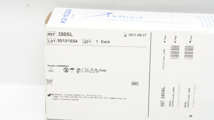 - DeRoyal 350SL Wrist and Thumb Splint Tritex Small 8 inch, Left