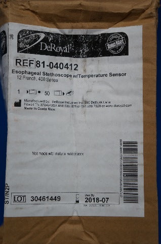 - DeRoyal 81-040412 Esophageal Stethoscope W/ Temperature Sensor 12Fr. ~ Box of 50