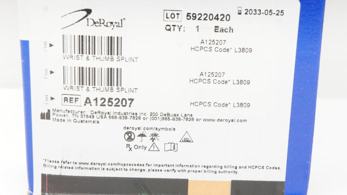 - DeRoyal A125207 Wrist & Thumb Splint Large/Right