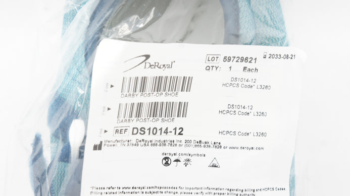 - DeRoyal DS1014-12 Darby Post-Op Shoe Loop Lock Closure Medium/Male 8.5-10