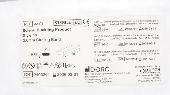 - DORC 92-01 Scleral Buckling Products 2.0mm Circling Band Style 40