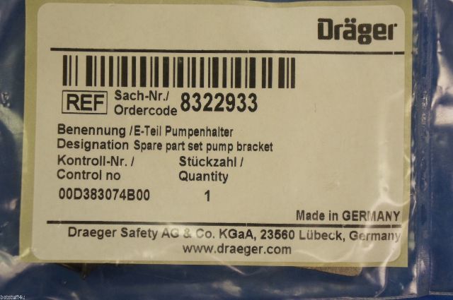 - Drager 8322933 Designation Spare Part Set Pump Backet
