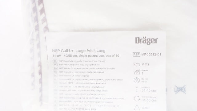 - Drager Medical MP00932-01 NBP Cuff L+ Large Adult Long 31cm-40/55cm - Box of 9