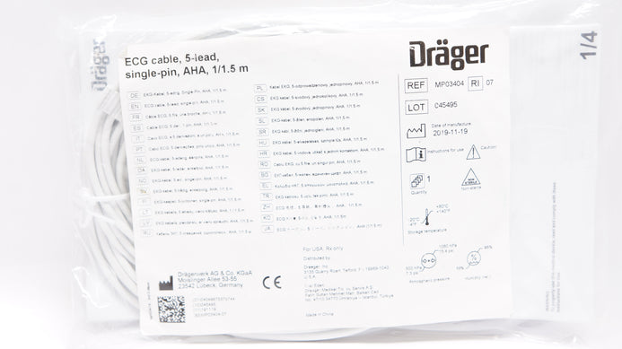 - Dräger MP03404 ECG Cable, 5-lead Single-pin, AHA, 1 1.5m