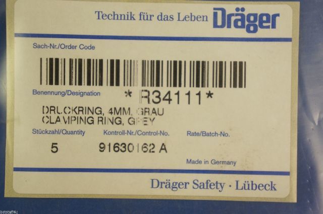 Drager R34111 Druckring, 4mm, Grau Clamping Ring, Grey ~ Pack of 5