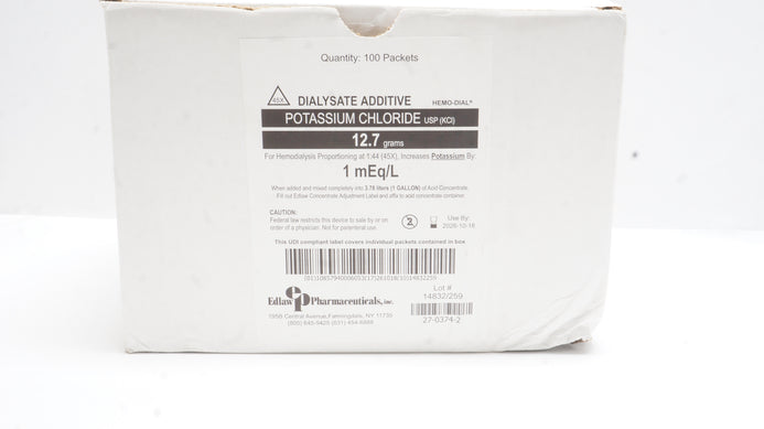 - Edlaw Pharmaceutical Dialysate Additive Potassium Chloride 12.7g - Box of 100