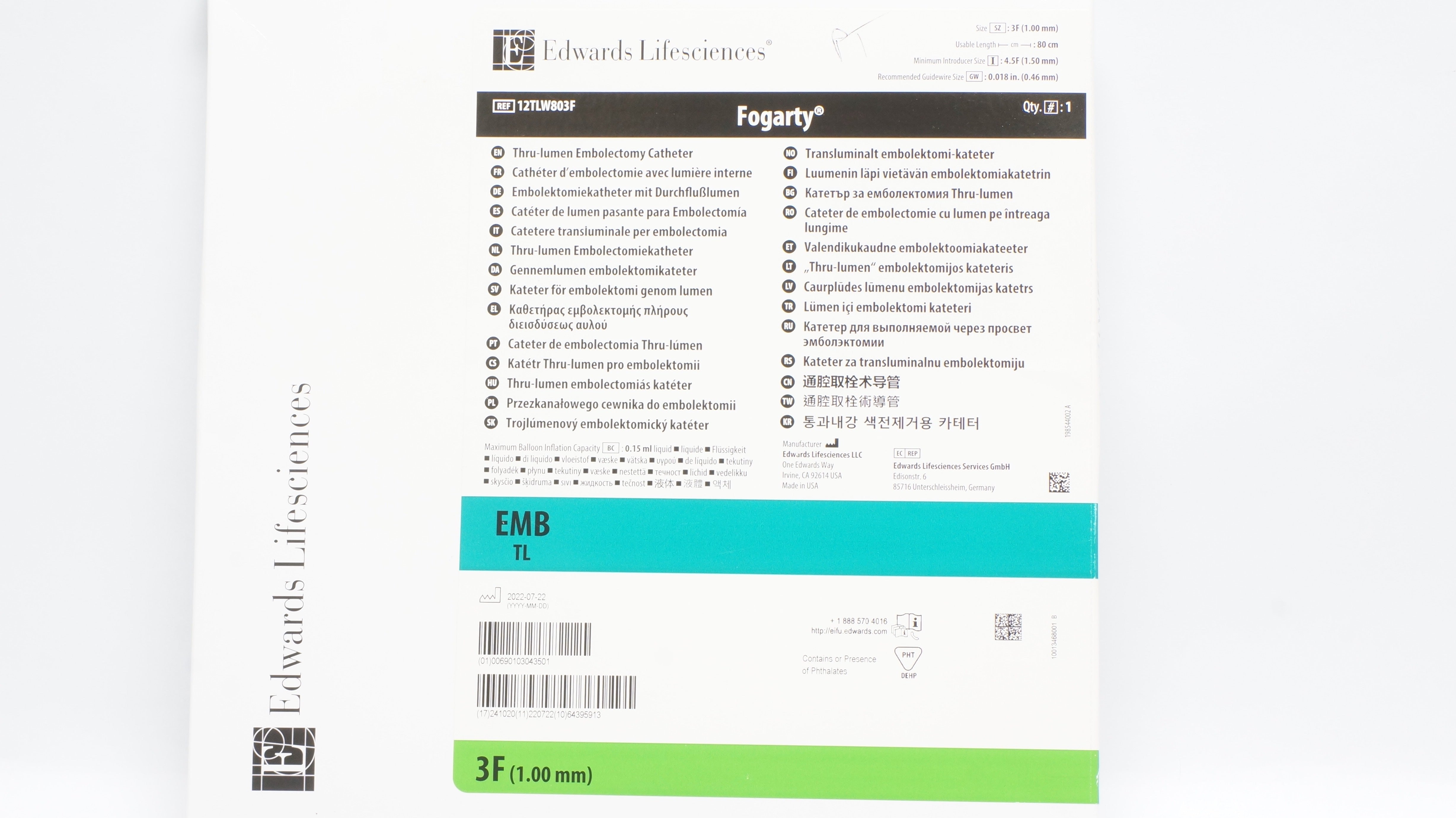 - Edwards Lifesciences 12TLW803F Fogarty Thru-lumen Embolectomy Cath. 3F (x)
