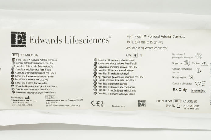 - Edwards Lifesciences FEMII018A Fem-Flex II Femoral Arterial Cannula 18Fr. (x)