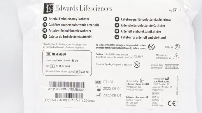 - Edwards Lifesciences NL5EMB80T Arterial Embolectomy Cath. 5F x 80cm