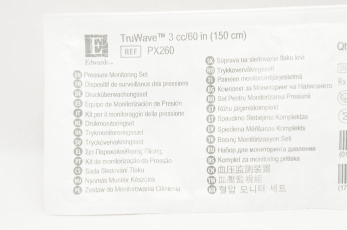 - Edwards Lifesciences PX260 TruWave Pressure Monitoring Set 3cc/60inch (x)