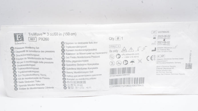 - Edwards Lifesciences PX260 TruWave Pressure Monitoring Set 3cc/60inch (x)