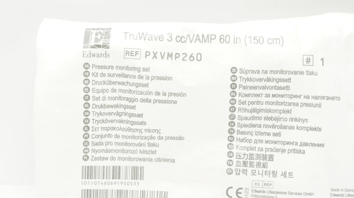 - Edwards Lifesciences PXVMP260 Pressure Monitoring Set TruWave 3cc/VAMP 60in (X)
