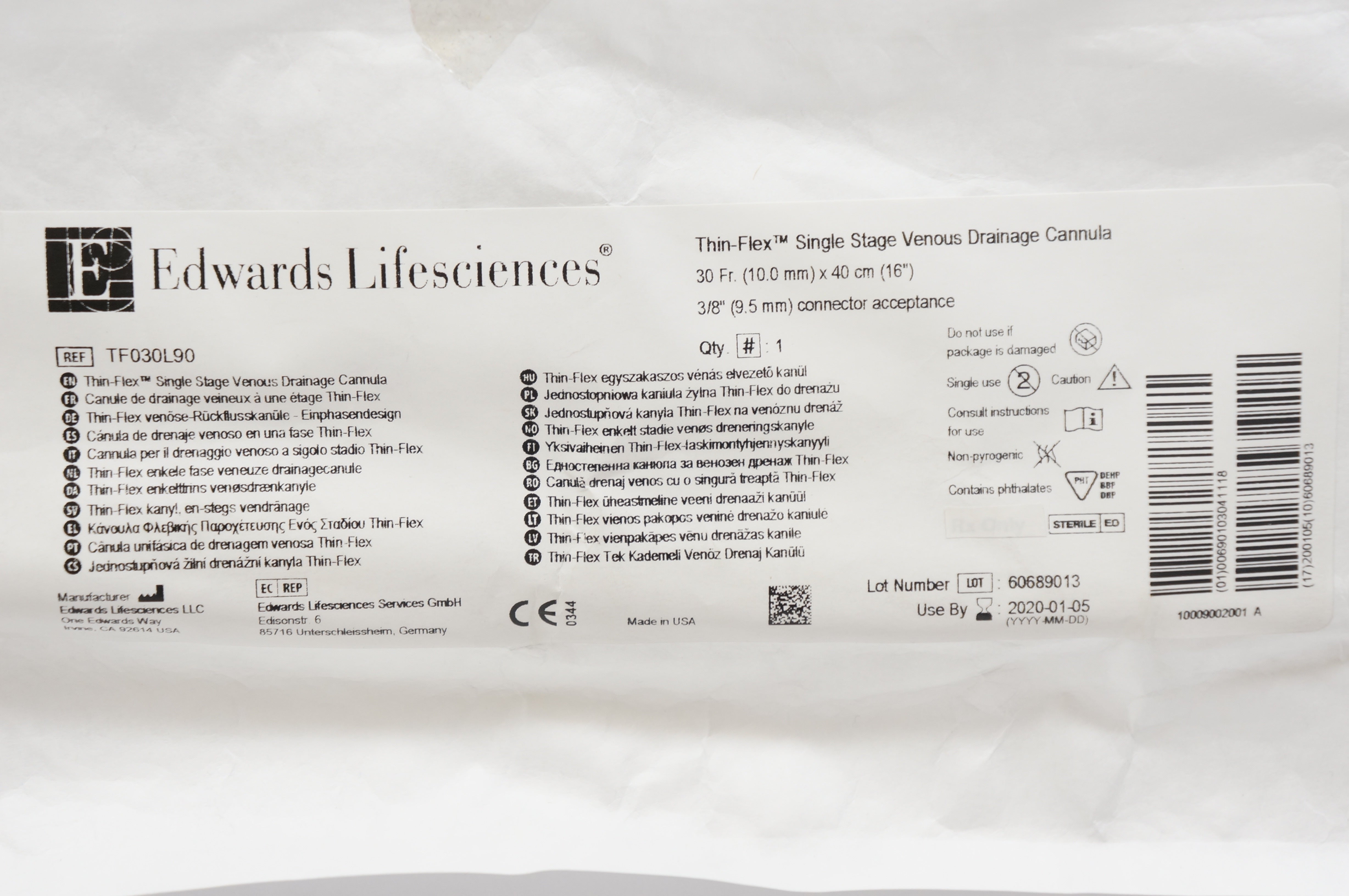 - Edwards Lifesciences TF030L90 Thin-Flex Single Stage Venous Cannula 30Fx40cm (x)