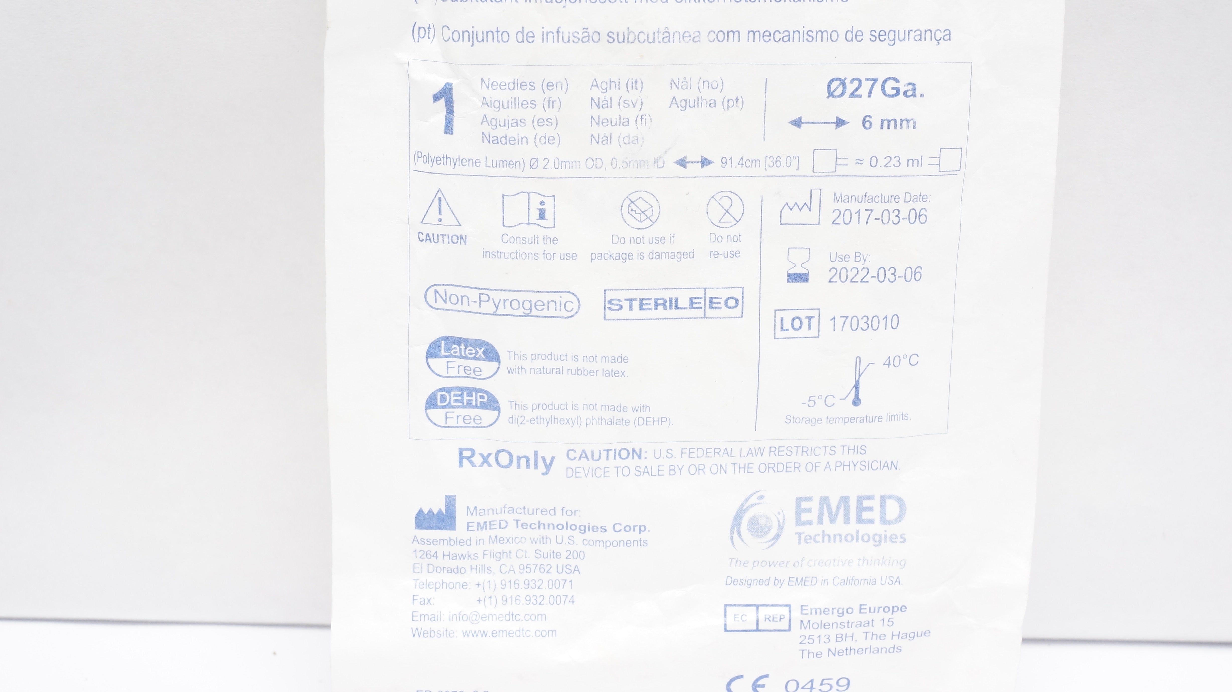 - EMED Technologies SAF-Q-106-G27 Soft-Glide Subcutaneous Infusion Set (x)