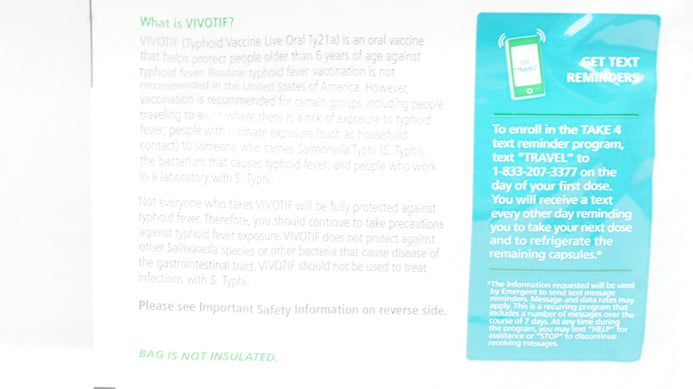 - Emergent Biosolutions Vivotif Typhoid Vaccine Live Oral Ty21a Capsules
