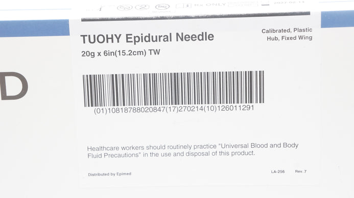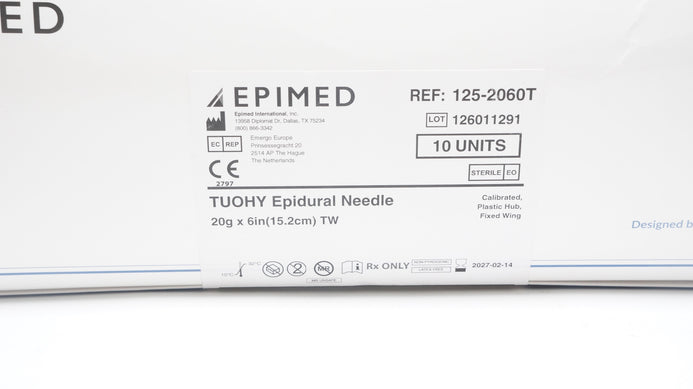 - EPIMED 125-2060T Tuohy Epidural Needle, 20g x 6.0inch TW - Box of 10