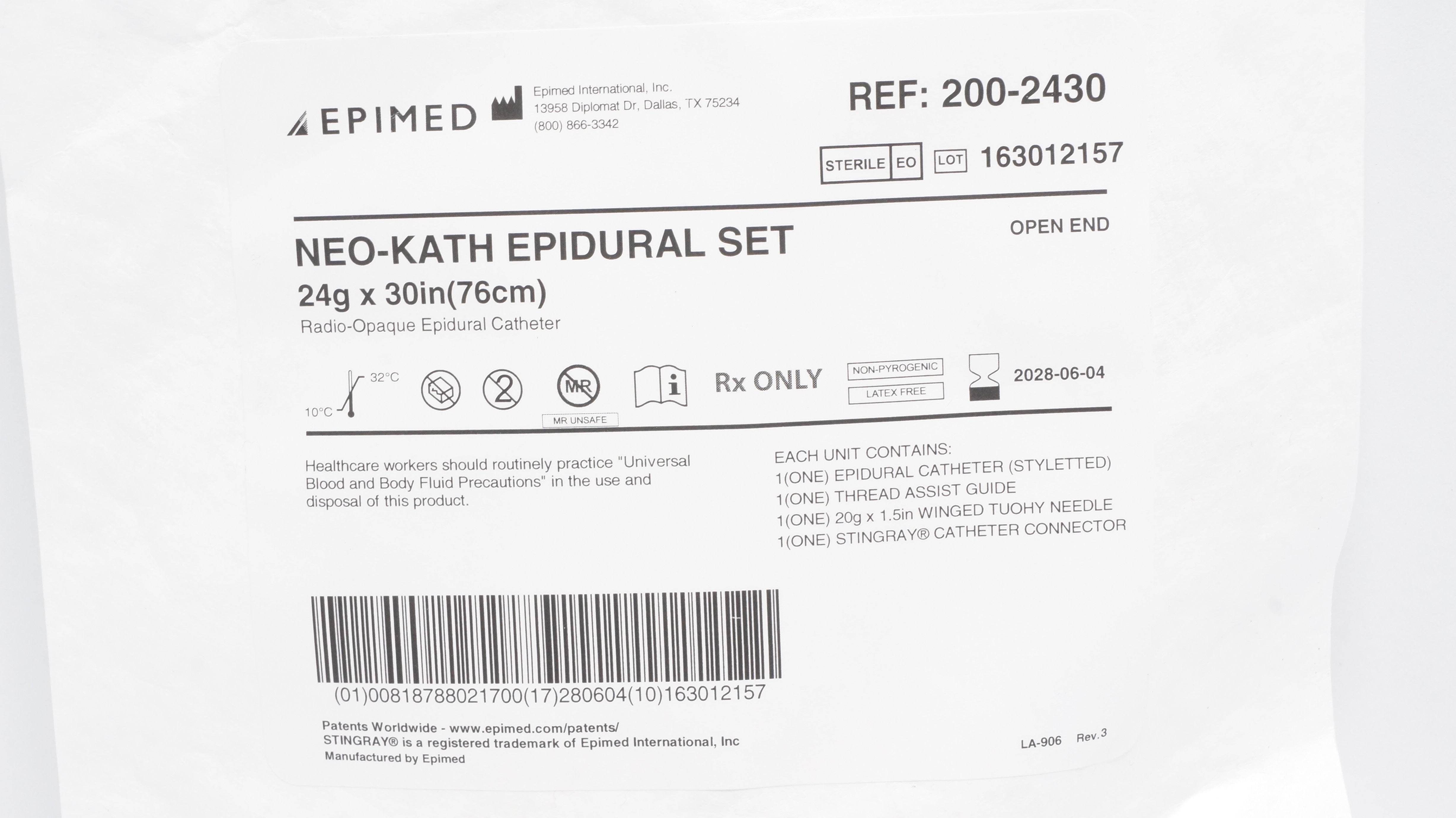 - Epimed 200-2430 Neo-Kath Epidural Cath. Set 24G x 30inch
