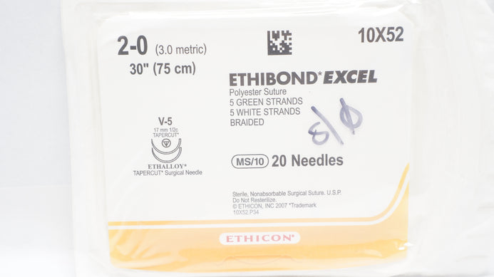 - Ethicon 10X52 2-0 Ethibond Excel V-5 17mm 1/2c Tapercut, 30inch (x)