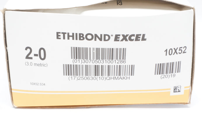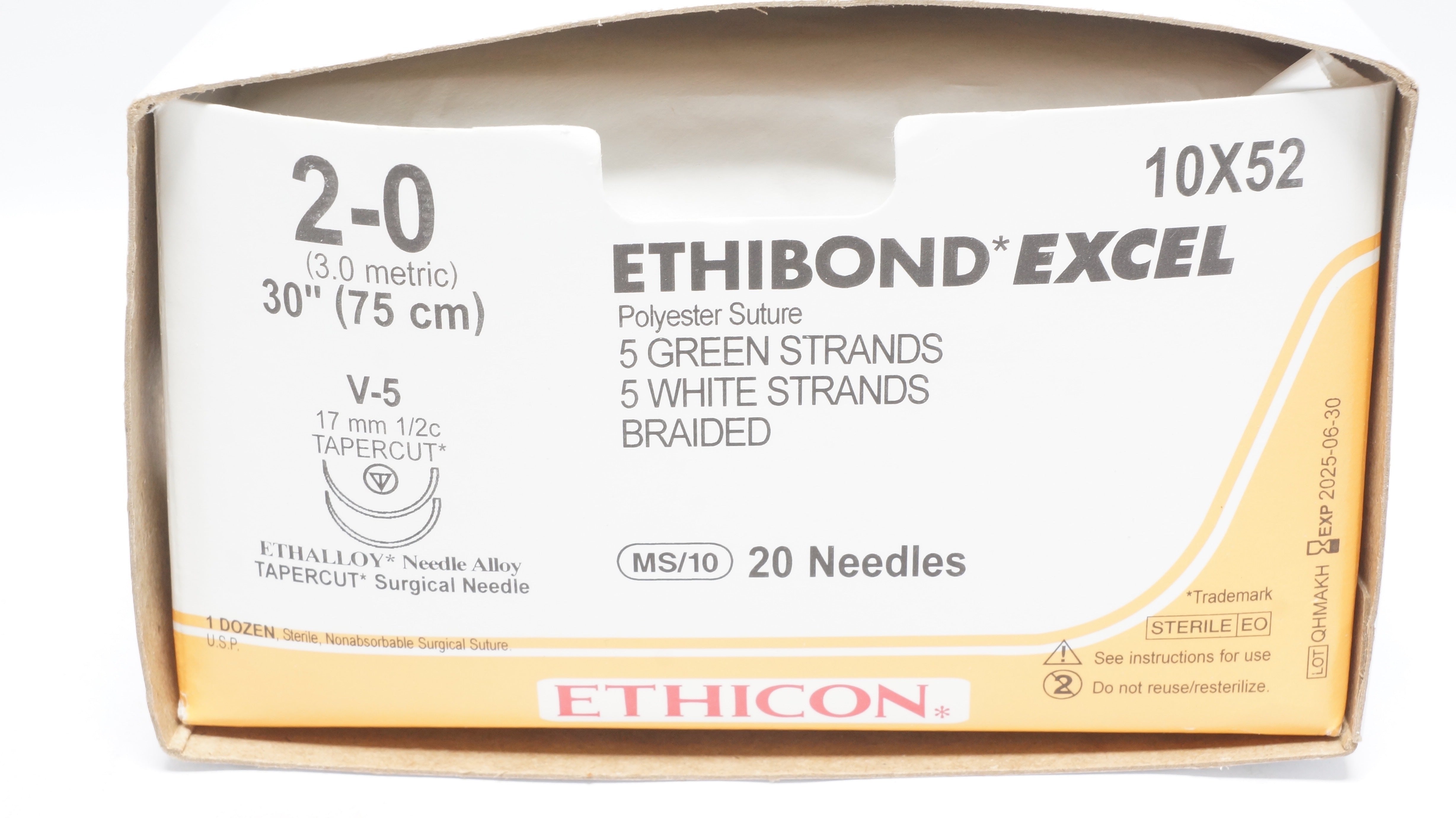 - Ethicon 10X52 2-0 Ethibond Excel V-5 17mm 1/2c Tapercut, 30inch (x) - Box of 12