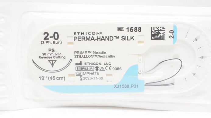- Ethicon 1588 2-0 PERMA-HAND SILK Stre PS 26mm 3/8c Reverse Cutting, 18inch (x)