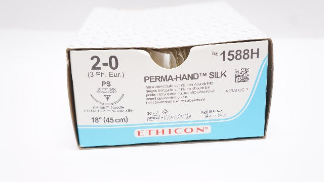 - Ethicon 1588H 2-0 PERMA-HAND SILK PS 26mm 3/8c Reverse Cutting,18in - Box of 36