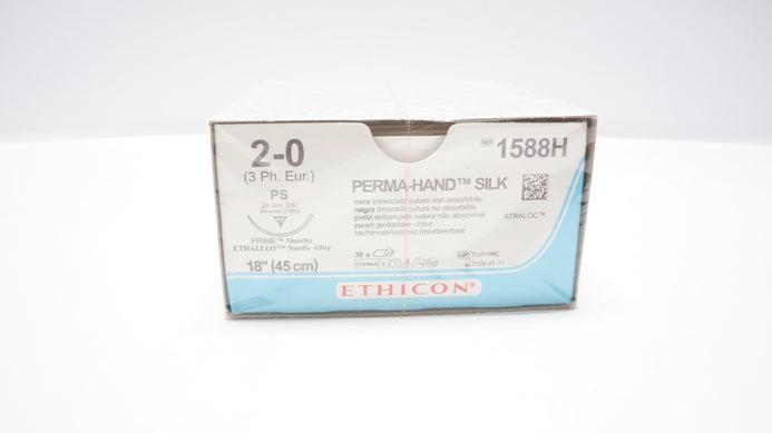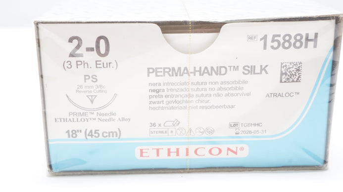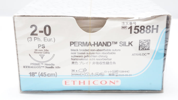 - Ethicon 1588H 2-0 PERMA-HAND SILK PS 26mm 3/8c Reverse Cutting 18inch-Box of 36