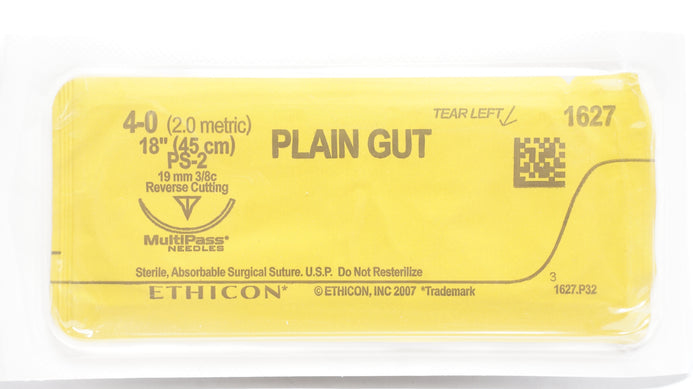 - Ethicon 1627 4-0 Plain Gut PS-2 19mm 3/8c Reverse Cutting 18 inch (x)